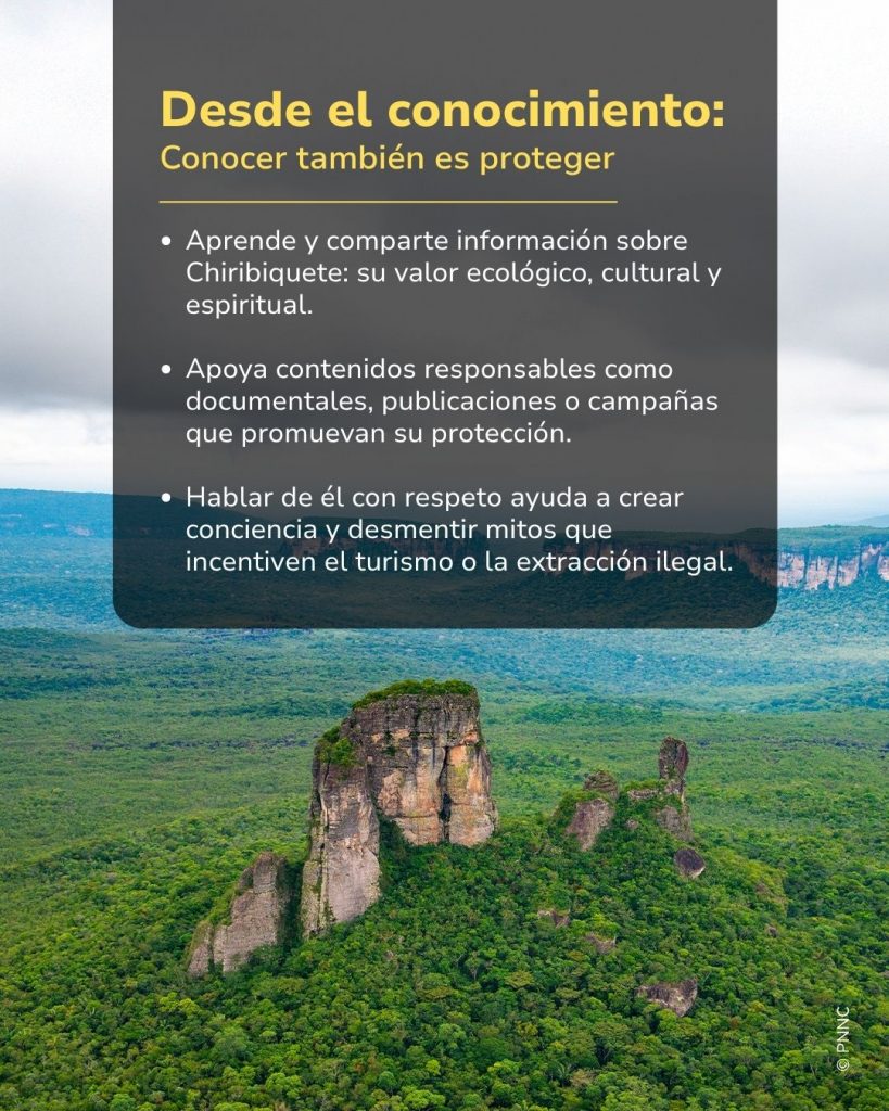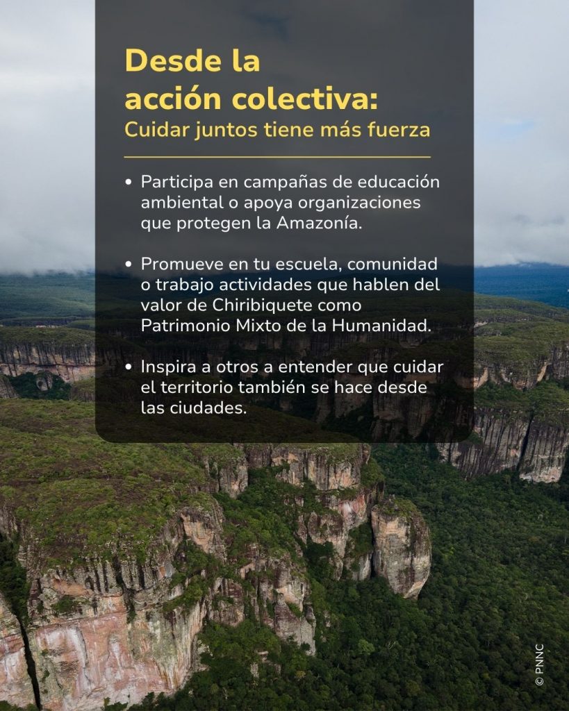 Proteger Chiribiquete no es solo tarea de los guardaparques y de quienes viven cerca del él. Todos podemos ser parte de su cuidado desde donde estemos. Ser Guardián de Chiribiquete es una forma de reconocer su valor desde lo natural, cultural y espiritual.