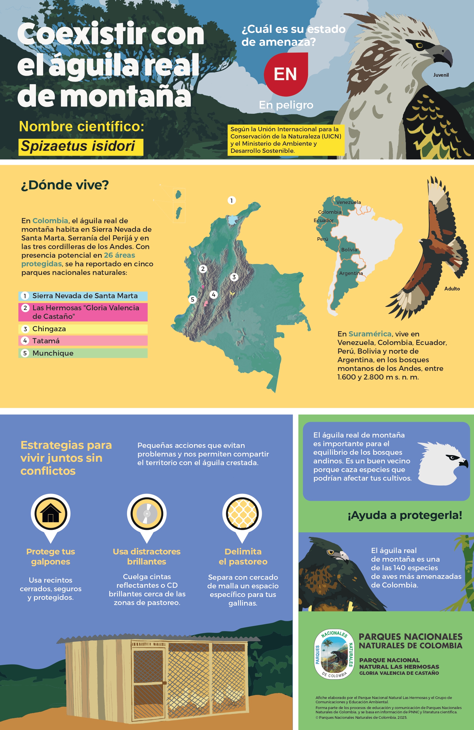 📖 Consulta el afiche Coexistir con el águila real de montaña y conoce cómo convivir con esta especie en los Andes.